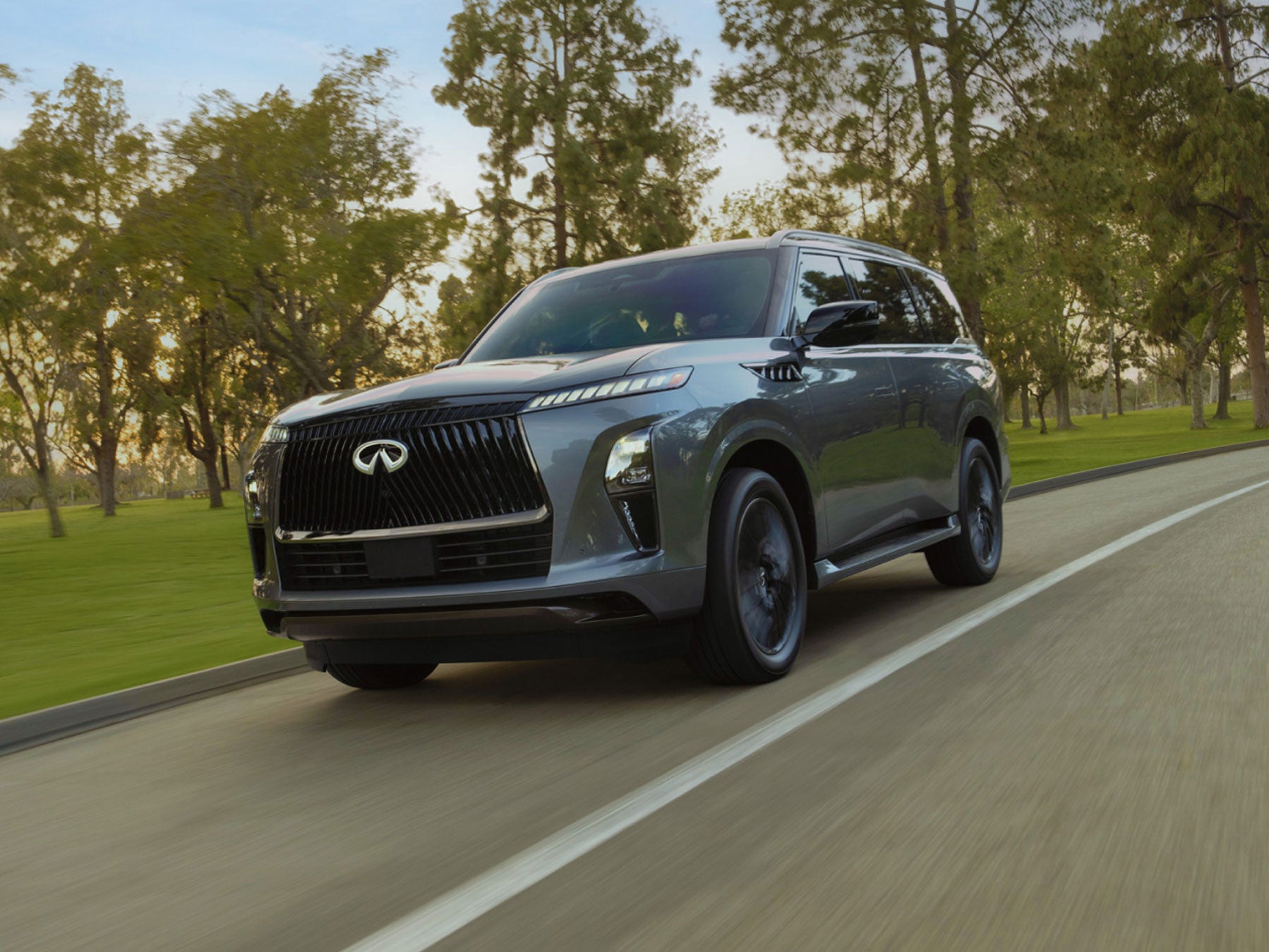 The 2026 QX80 is proudly emblazoned with the brand’s redesigned and illuminated three-dimensional badge; accentuating the bright Infinite Road as it leads on toward a bold new horizon.