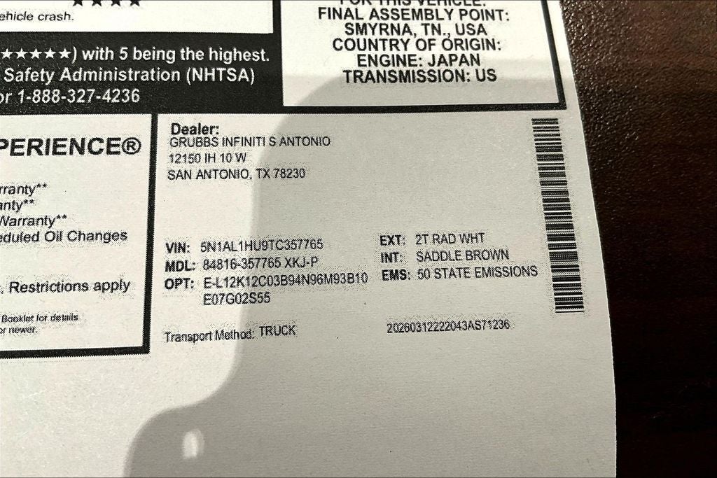 Contact us now to find out why so many customers from across the US rely on Grubbs INFINITI of San Antonio, a family owned business since 1948, to meet their automotive needs! Outside of San Antonio area, no problem, we offer: Reliable, affordable and fast shipping options Nationwide- Our shipping partners are licensed, bonded, fully insured & experienced with high-end vehicles. Hassle free and competitive financing options - Let us leverage our relationships with leading Banks & Credit Unions to get you the lowest rates and best terms for all credit types. Whether you're shopping for a new INFINITI or a quality used pre-owned vehicle you'll receive the same first-class experience from our certified staff of factory trained specialists. Call us today 210-728-3486 or visit us at www.INFINITIofsanantonio.com. .$6000 - Retail Cash. Exp. 05/04/2026 Price excludes $1995 of dealer added accessories.