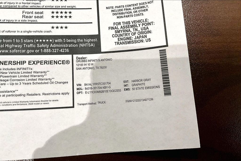 Contact us now to find out why so many customers from across the US rely on Grubbs INFINITI of San Antonio, a family owned business since 1948, to meet their automotive needs! Outside of San Antonio area, no problem, we offer: Reliable, affordable and fast shipping options Nationwide- Our shipping partners are licensed, bonded, fully insured & experienced with high-end vehicles. Hassle free and competitive financing options - Let us leverage our relationships with leading Banks & Credit Unions to get you the lowest rates and best terms for all credit types. Whether you're shopping for a new INFINITI or a quality used pre-owned vehicle you'll receive the same first-class experience from our certified staff of factory trained specialists. Call us today 210-728-3486 or visit us at www.INFINITIofsanantonio.com. .$5000 - Retail Cash. Exp. 03/31/2026