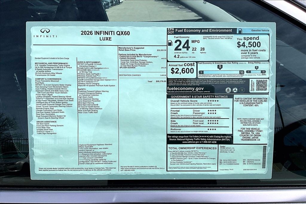 - Radio: Klipsch Premium Audio System -inc: 16 speakers w/subwoofer, INFINITI InTouch 12.3" interactive display, Google built-in w/navigation: Google Assistant, Playstore, maps and data, SiriusXM satellite radio, wireless Apple CarPlay, wireless Android Auto, advanced voice recognition (one shot VDE, Natural Language Understanding (NLU)), INFINITI InTouch services and 5G Wi-Fi hotspot, Active Noise Cancellation (ANC) and 2 data capable type C USB ports in front row