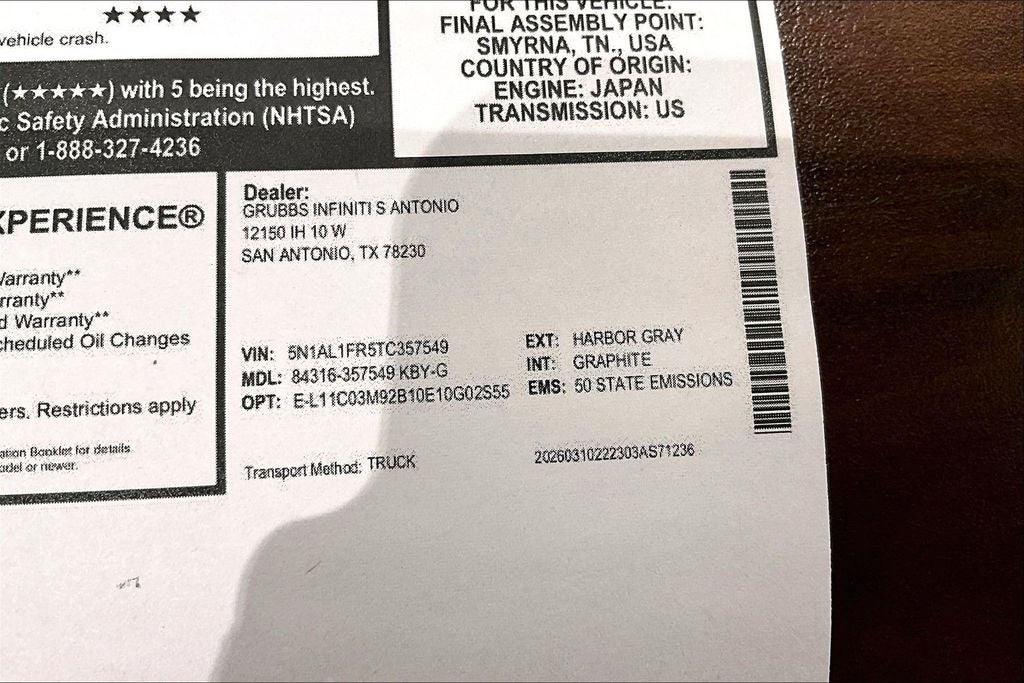 Contact us now to find out why so many customers from across the US rely on Grubbs INFINITI of San Antonio, a family owned business since 1948, to meet their automotive needs! Outside of San Antonio area, no problem, we offer: Reliable, affordable and fast shipping options Nationwide- Our shipping partners are licensed, bonded, fully insured & experienced with high-end vehicles. Hassle free and competitive financing options - Let us leverage our relationships with leading Banks & Credit Unions to get you the lowest rates and best terms for all credit types. Whether you're shopping for a new INFINITI or a quality used pre-owned vehicle you'll receive the same first-class experience from our certified staff of factory trained specialists. Call us today 210-728-3486 or visit us at www.INFINITIofsanantonio.com. .$5000 - Retail Cash. Exp. 05/04/2026
