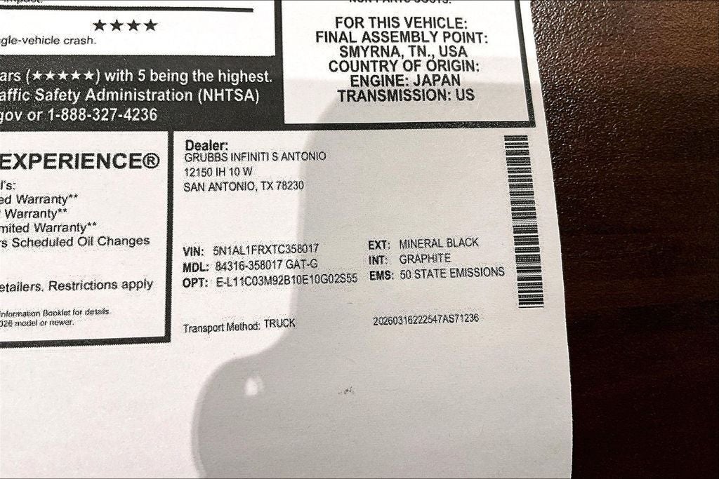 Contact us now to find out why so many customers from across the US rely on Grubbs INFINITI of San Antonio, a family owned business since 1948, to meet their automotive needs! Outside of San Antonio area, no problem, we offer: Reliable, affordable and fast shipping options Nationwide- Our shipping partners are licensed, bonded, fully insured & experienced with high-end vehicles. Hassle free and competitive financing options - Let us leverage our relationships with leading Banks & Credit Unions to get you the lowest rates and best terms for all credit types. Whether you're shopping for a new INFINITI or a quality used pre-owned vehicle you'll receive the same first-class experience from our certified staff of factory trained specialists. Call us today 210-728-3486 or visit us at www.INFINITIofsanantonio.com. .$5000 - Retail Cash. Exp. 05/04/2026
