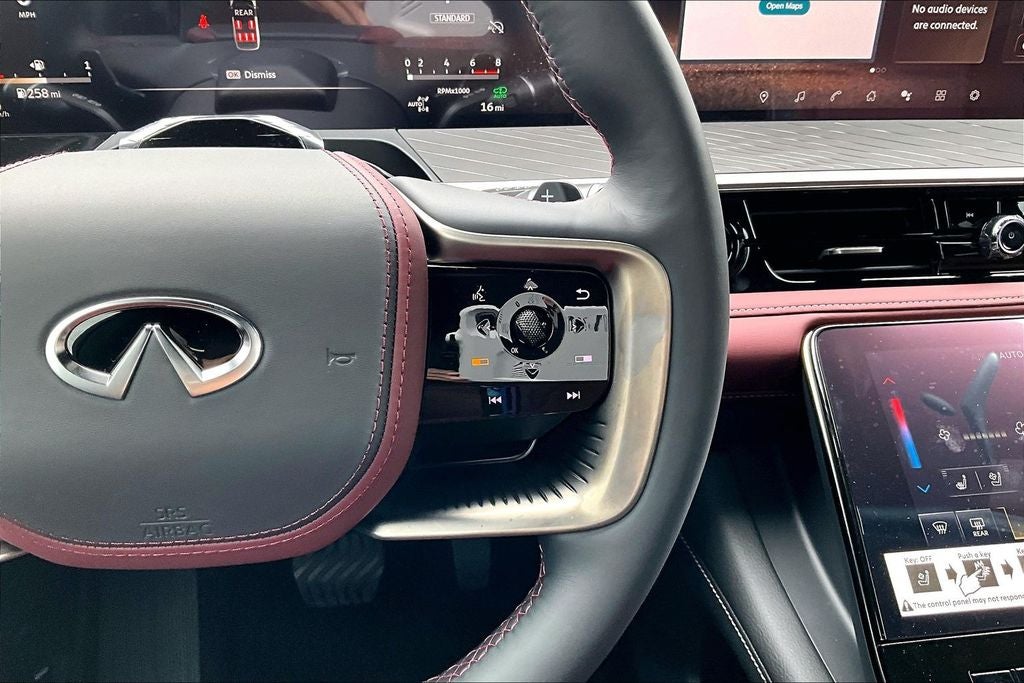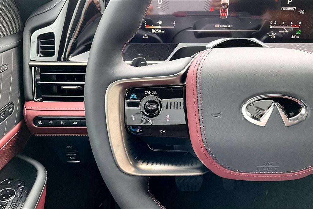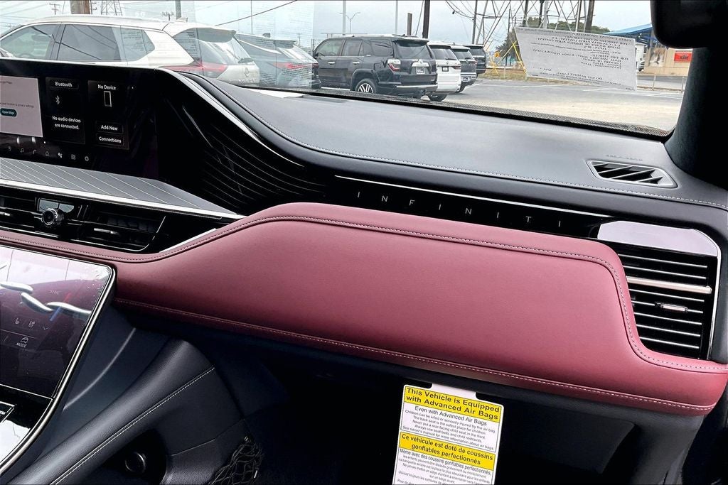 Grubbs INFINITI of San Antonio The only Authorized INFINITI Dealer in San Antonio with the largest New and Pre-Owned INFINITI Selection in the area. This 2026 INFINITI QX80 AUTOGRAPH comes with 3 Year INFINITI Recommended Maintenance Included at no charge and is loaded with the following Factory Options: Black Interior Lighting Package (INFINITI Radiant Black Cargo Scuff Plates and Panoramic Illuminated Headliner), Premium Cargo Package (Cargo Blocks/Stabilizers, Cargo Shelf/Barrier, Carpeted Cargo Area Protector, Console Net, and Soft-Sided Cargo Cooler), 3rd row seats: bench, 4-Wheel Disc Brakes, ABS brakes, Adaptive suspension, Air Conditioning, Alloy wheels, AM/FM radio: SiriusXM with 360L, Anti-whiplash front head restraints, Apple CarPlay/Android Auto, Audio memory, Auto High-beam Headlights, Auto tilt-away steering wheel, Auto-dimming door mirrors, Auto-dimming Rear-View mirror, Auto-leveling suspension, Automatic temperature control, Brake assist, Bumpers: body-color, Compass, Delay-off headlights, Driver door bin, Driver vanity mirror, Dual front impact airbags, Dual front side impact airbags, Electronic Stability Control, Emergency communication system: INFINITI InTouch, Four wheel independent suspension, Front anti-roll bar, Front Bucket Seats, Front Center Armrest, Front dual zone A/C, Front reading lights, Fully automatic headlights, Garage door transmitter: myQ Connected Garage, Genuine wood dashboard insert, Genuine wood door panel insert, Heads-Up Display, Heated and Climate Controlled Front Bucket Seats with Massage, Heated door mirrors, Heated front seats, Heated rear seats, Heated steering wheel, HVAC memory, Illuminated entry, Knee airbag, Leather steering wheel, Low tire pressure warning, Memory seat, Navigation system: Google Built-in, Occupant sensing airbag, Outside temperature display, Overhead airbag, Overhead console, Panic alarm, Passenger door bin, Passenger vanity mirror, Power door mirrors, Power driver seat, Power Liftgate, Power moonroof, Power passenger seat, Power steering, Power windows, Radio data system, Radio: Klipsch Premiere Audio System, Rain sensing wipers, Rear air conditioning, Rear anti-roll bar, Rear reading lights, Rear seat center armrest, Rear window defroster, Rear window wiper, Reclining 3rd row seat, Remote keyless entry, Security system, Semi-Aniline Premium Leather Seating Surfaces, Speed control, Speed-sensing steering, Splash Guards, Split folding rear seat, Spoiler, Steering wheel memory, Steering wheel mounted audio controls, Tachometer, Telescoping steering wheel, Tilt steering wheel, Traction control, Trip computer, Turn signal indicator mirrors, Two-Tone Premium Paint, Variably intermittent wipers, Ventilated front seats, Ventilated rear seats, and Wheels: 22 x 8.5J Cast Aluminum-Alloy!! Priced below KBB Fair Purchase Price!
