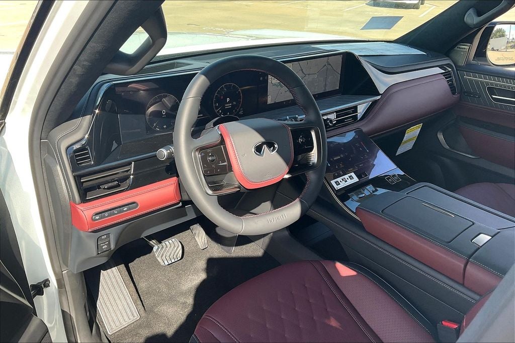 Grubbs INFINITI – The Only Authorized INFINITI Dealer in Grapevine Proudly serving drivers across the U.S. Since 1948! Explore one of the largest selections of New and Pre-Owned INFINITI vehicles in the area — all backed by our commitment to excellence and exceptional customer service. Every New Grubbs INFINITI comes with: Our Exclusive Lifetime Powertrain Warranty 3 Years of INFINITI-Recommended Maintenance – Included, with No Charge Valet Service when servicing your vehicle with pick up and drop at work or home and Hassle-Free Nationwide Shipping is Available. This 2026 INFINITI QX80 AUTOGRAPH in Radiant White/Black Obsidian with Premium Burgundy interior is equipped with the following high value Features Premium Cargo Package (Cargo Blocks/Stabilizers, Cargo Shelf/Barrier, Carpeted Cargo Area Protector, Console Net, and Soft-Sided Cargo Cooler), 3rd row seats: bench, 4-Wheel Disc Brakes, ABS brakes, Adaptive suspension, Air Conditioning, Alloy wheels, Anti-whiplash front head restraints, Apple CarPlay/Android Auto, Auto High-beam Headlights, Auto tilt-away steering wheel, Auto-dimming door mirrors, Auto-dimming Rear-View mirror, Auto-leveling suspension, Automatic temperature control, Brake assist, Bumpers: body-color, Compass, Delay-off headlights, Driver door bin, Driver vanity mirror, Dual front impact airbags, Dual front side impact airbags, Electronic Stability Control, Emergency communication system: INFINITI InTouch, Four wheel independent suspension, Front anti-roll bar, Front Bucket Seats, Front Center Armrest, Front dual zone A/C, Front reading lights, Fully automatic headlights, Garage door transmitter: myQ Connected Garage, Genuine wood dashboard insert, Genuine wood door panel insert, Heads-Up Display, Heated and Climate Controlled Front Bucket Seats with Massage, Heated door mirrors, Heated front seats, Heated rear seats, Heated steering wheel, HVAC memory, Illuminated entry, Knee airbag, Leather steering wheel, Low tire pressure warning, Memory seat, Navigation system: Google Built-in, Occupant sensing airbag, Outside temperature display, Overhead airbag, Overhead console, Panic alarm, Passenger door bin, Passenger vanity mirror, Power door mirrors, Power driver seat, Power Liftgate, Power moonroof, Power passenger seat, Power steering, Power windows, Radio: Klipsch Premiere Audio System, Rain sensing wipers, Rear air conditioning, Rear anti-roll bar, Rear reading lights, Rear seat center armrest, Rear window defroster, Rear window wiper, Reclining 3rd row seat, Remote keyless entry, Security system, Semi-Aniline Premium Leather Seating Surfaces, Speed control, Speed-sensing steering, Splash Guards, Split folding rear seat, Spoiler, Steering wheel memory, Steering wheel mounted audio controls, Telescoping steering wheel, Tilt steering wheel, Traction control, Turn signal indicator mirrors, Two-Tone Super Premium Paint, Variably intermittent wipers, Ventilated front seats, Ventilated rear seats, and Wheels: 22 x 8.5J Cast Aluminum-Alloy.