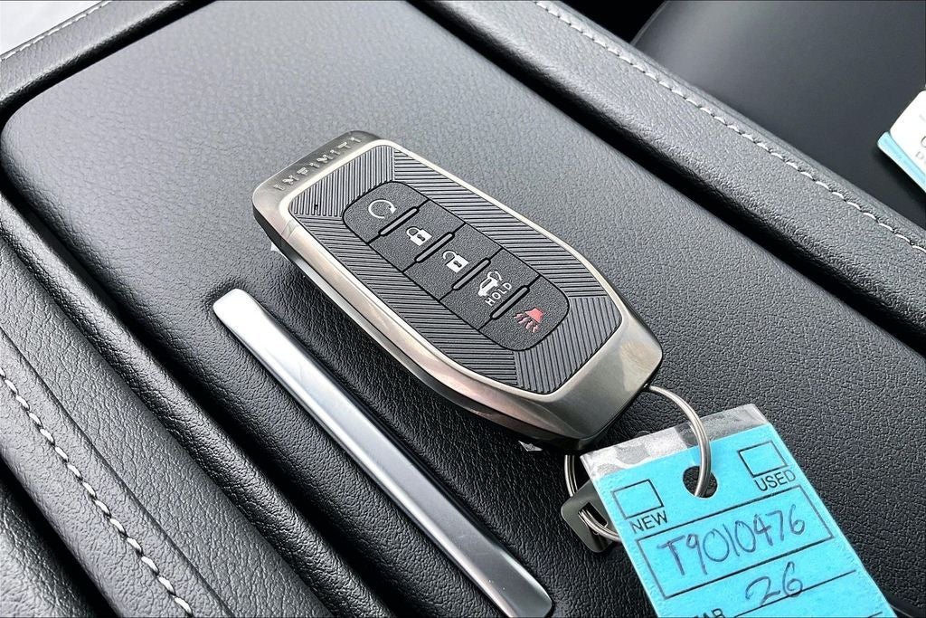 - Radio: Klipsch Premium Audio System -inc: 14 speakers w/Active Sound Enhancement (ASE), demo mode, dual 14.3" infotainment screens w/front control panel, Google built-in w/navigation, Amazon Alexa w/hotword, Bluetooth® hands free phone and audio streaming, wireless Apple CarPlay and Android Auto, hybrid radio, SiriusXM w/360L, INFINITI InTouch services, 5G Wi-Fi hotspot and 2 USB type-C media ports w/iPod interface