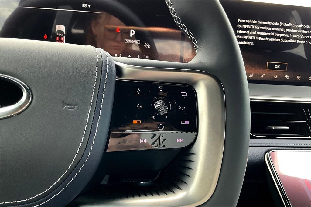 - Radio: Klipsch Reference Premiere Audio System -inc: 24 speakers w/Active Sound Enhancement (ASE), 3D audio, demo mode, individual audio headrest speakers for driver and front passenger, 14.3" infotainment screens w/front control panel, Google built-in w/navigation, Amazon Alexa w/hotword, Bluetooth® hands free phone and audio streaming, wireless Apple CarPlay and Android Auto, hybrid radio, SiriusXM w/360L, INFINITI InTouch services, 5G Wi-Fi hotspot and 2 USB type-C media ports w/iPod interface