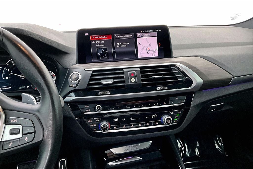 Grubbs INFINITI offers this Market Priced Pre-Owned 2019 BMW X3 xDrive30i in Carbon Black Metallic with a premium Mocha interior. Fully inspected and all Eligible Vehicles are backed by our exclusive Grubbs Lifetime Powertrain Warranty, it comes loaded with features including M Sport Package, Premium Package (Advanced Real-Time Traffic Information, Apple CarPlay Compatibility, Head-Up Display, Heated Front Seats, Heated Steering Wheel, Navigation System, Remote Services, and Wheels: 19 x 7.5 (Style 692)), 8-Speed Automatic, Automatic temperature control, Exterior Parking Camera Rear, Front Ventilated Seats, harman/kardon Surround Sound System, Hi-Fi Sound System, Memory seat, Panoramic Moonroof, Power driver seat, Power Liftgate, Rain sensing wipers, 12 Speakers, 3.385 Axle Ratio, 4-Wheel Disc Brakes, ABS brakes, Aerodynamic Kit, Air Conditioning, Alloy wheels, AM/FM radio, Ambient Lighting, Auto-dimming door mirrors, Auto-dimming Rear-View mirror, Brake assist, Bumpers: body-color, Comfort Access Keyless Entry, Delay-off headlights, Driver door bin, Driver vanity mirror, Dual front impact airbags, Dual front side impact airbags, DVD Area Coding (North America), Electronic Stability Control, Emergency communication system: BMW Assist eCall, Fineline Cove Matte Finish Wood Trim, Fog lights, Four wheel independent suspension, Front anti-roll bar, Front Bucket Seats, Front Center Armrest, Front dual zone A/C, Front reading lights, Fully automatic headlights, Garage door transmitter, Genuine wood dashboard insert, Genuine wood door panel insert, Hands-Free Bluetooth® & USB Audio Connection, Heated door mirrors, Illuminated entry, Knee airbag, LED Headlights w/Cornering Lights, Low tire pressure warning, Lumbar Support, Occupant sensing airbag, Outside temperature display, Overhead airbag, Panic alarm, Passenger door bin, Passenger vanity mirror, Power door mirrors, Power Front Seats, Power passenger seat, Power steering, Power windows, Radio Control US, Radio data system, Radio: AM/FM Stereo w/HD, Rear air conditioning, Rear anti-roll bar, Rear reading lights, Rear seat center armrest, Rear window defroster, Rear window wiper, Remote keyless entry, Roof rack: rails only, Security system, SensaTec Upholstery, Shadowline Exterior Trim, SiriusXM Satellite Radio, Speed control, Speed-sensing steering, Speed-Sensitive Wipers, Split folding rear seat, Spoiler, Sport Bucket Seats, Sport steering wheel, Standard Suspension, Steering wheel mounted audio controls, Tachometer, Telescoping steering wheel, Tilt steering wheel, Traction control, Trailer Hitch, Trip computer, Turn signal indicator mirrors, Variably intermittent wipers, Wheels: 18 x 7.0 Y-Spoke (Style 688), and Wheels: 19 x 7.5 (Style 698M). 2019 BMW X3 xDrive30i