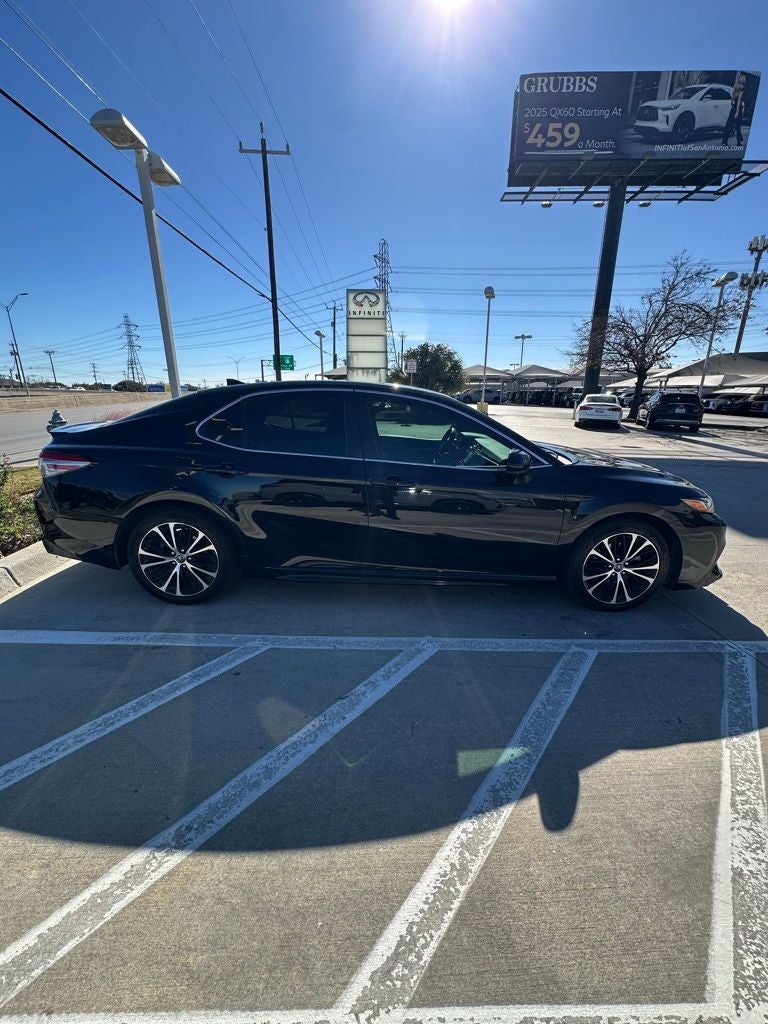 Grubbs INFINITI of San Antonio is pleased to present you with another Market Priced Pre-Owned Vehicle that has gone through our comprehensive 167 point safety inspection. This 2019 Toyota Camry SE is loaded with the following high value options Black Cloth, ABS brakes, Active Cruise Control, Alloy wheels, Electronic Stability Control, Illuminated entry, Low tire pressure warning, Navigation System, Remote keyless entry, Traction control, 4-Wheel Disc Brakes, 6 Speakers, Air Conditioning, AM/FM radio, Apple CarPlay, Auto High-beam Headlights, Automatic temperature control, Brake assist, Bumpers: body-color, Delay-off headlights, Driver door bin, Driver vanity mirror, Dual front impact airbags, Dual front side impact airbags, Emergency communication system: Safety Connect, Exterior Parking Camera Rear, Fabric Seat Trim w/SofTex, Four wheel independent suspension, Front anti-roll bar, Front Bucket Seats, Front Bucket Sport Seats, Front Center Armrest, Front reading lights, Fully automatic headlights, Knee airbag, Leather Shift Knob, Occupant sensing airbag, Outside temperature display, Overhead airbag, Overhead console, Panic alarm, Passenger door bin, Passenger vanity mirror, Power door mirrors, Power driver seat, Power steering, Power windows, Radio data system, Radio: Entune 3.0 Audio w/App Suite, Rear anti-roll bar, Rear reading lights, Rear seat center armrest, Rear side impact airbag, Rear window defroster, Security system, Speed control, Speed-sensing steering, Split folding rear seat, Spoiler, Sport steering wheel, Steering wheel mounted audio controls, Tachometer, Telescoping steering wheel, Tilt steering wheel, Trip computer, Variably intermittent wipers, and Wheels: 8.0J x 18 Black Machined-Finish Alloy.