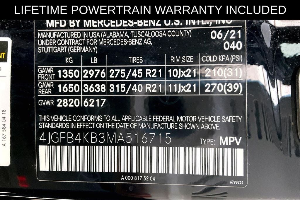 - Front Tire Size: P275/45HR21