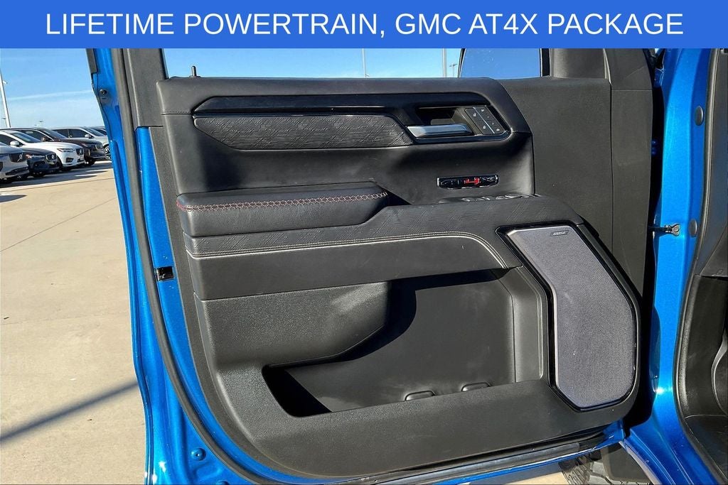 Grubbs INFINITI offers this Market Priced Pre-Owned 2022 GMC Sierra 1500 AT4X in Dynamic Blue Metallic with a premium Obsidian Rush interior. Fully inspected and all Eligible Vehicles are backed by our exclusive Grubbs Lifetime Powertrain Warranty, it comes loaded with features including 10-Speed Automatic, 4WD, Obsidian Rush Leather, Bose Premium Series w/12-Speaker System, Front Center Armrest, and MultiPro Audio System by Kicker (LPO) Preferred Equipment Group 4SG (Bose Premium Series w/12-Speaker System, MultiPro Audio System by Kicker (LPO), Bed View Camera, Color-Keyed Carpeting Floor Covering, Dark Nickel Header & Grille Insert Bars, Electric Rear-Window Defogger, Floor-Mounted Center Console, Front Rainsensing Wipers, GMC Connected Access Capable, HD Surround Vision, Heated Driver & Front Outboard Passenger Seating, Hitch Guidance w/Hitch View, Integrated Trailer Brake Controller, LED Cargo Area Lighting, Multicolor 15 Diagonal Head-Up Display, OnStar & GMC Connected Services Capable, Perimeter Lighting, Power Sliding Rear Window w/Rear Defogger, Power Sunroof, Rear Cross Traffic Braking, Rear Pedestrian Detection, Rear Wheelhouse Liners, Spray-On Pickup Bed Liner w/AT4X Logo, Steering Wheel Audio Controls, Theft Deterrent System (Unauthorized Entry), Trailer Camera Provisions, Trailer Side Blind Zone Alert, Ultrasonic Front & Rear Park Assist, Ventilated Driver & Front Passenger Seats, and Wireless Charging), Trailering Package, 10-Speed Automatic, 4WD, Obsidian Rush Leather, Front Center Armrest, 16-Way Power Driver Seat Adjuster w/Lumbar, 16-Way Power Passenger Seat Adjuster w/Lumbar, 3.23 Rear Axle Ratio, ABS brakes, Apple CarPlay/Android Auto, Auto High-beam Headlights, Auto-dimming door mirrors, Auto-dimming Rear-View mirror, Automatic Emergency Braking, Automatic temperature control, Black Sport Step (LPO), Brake assist, Bumpers: body-color, Dual front side impact airbags, Following Distance Indicator, Forward Collision Alert, Front License Plate Kit, Front Pedestrian Braking, Front reading lights, Full Grain Leather Seat Trim, Fully automatic headlights, Garage door transmitter, Genuine wood dashboard insert, Genuine wood door panel insert, Heads-Up Display, Heated door mirrors, Heated front seats, Heated rear seats, Heated steering wheel, Illuminated entry, IntelliBeam Automatic High Beam On/Off, Lane Keep Assist w/Lane Departure Warning, Memory seat, Navigation System, Outside temperature display, Overhead console, Panic alarm, Passenger vanity mirror, Power door mirrors, Power driver seat, Power passenger seat, Rear reading lights, Rear seat center armrest, Rear step bumper, Rear Underseat Storage (LPO), Safety Alert Seat, Split folding rear seat, Telescoping steering wheel, Tilt steering wheel, Ventilated front seats, and Wheels: 18 x 8.5 Gloss Black Painted Aluminum. 10-Speed Automatic, 4WD, Obsidian Rush Leather, Bose Premium Series w/12-Speaker System, Front Center Armrest, MultiPro Audio System by Kicker (LPO).