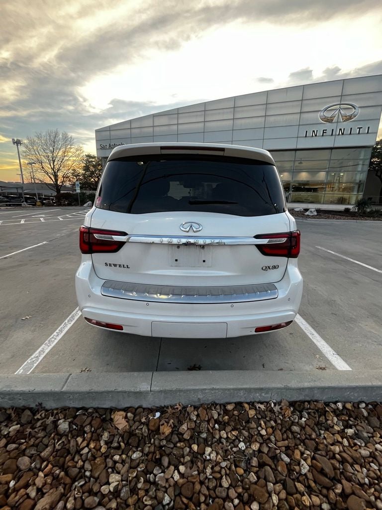 Grubbs INFINITI of San Antonio is pleased to present you with another Market Priced Pre-Owned Vehicle that has gone through our comprehensive 167 point safety inspection. This 2022 INFINITI QX80 LUXE is loaded with the following high value options Cargo Package (Console Net, First-Aid Kit, High-Density Non-Slip Rear Cargo Carpet, and Nylon-Cord Cargo Net), Certified Pre-Owned Select Certified, 13 Speakers, 2.937 Axle Ratio, 3rd row seats: split-bench, 4-Wheel Disc Brakes, ABS brakes, Air Conditioning, Alloy wheels, AM/FM radio: SiriusXM, Anti-whiplash front head restraints, Auto High-beam Headlights, Auto tilt-away steering wheel, Auto-dimming door mirrors, Auto-dimming Rear-View mirror, Auto-leveling suspension, Automatic temperature control, Brake assist, Bumpers: body-color, Compass, Delay-off headlights, Driver door bin, Driver vanity mirror, Dual front impact airbags, Dual front side impact airbags, Electronic Stability Control, Emergency communication system: INFINITI InTouch w/1-year trial, Four wheel independent suspension, Front anti-roll bar, Front Bucket Seats, Front Center Armrest, Front dual zone A/C, Front fog lights, Front reading lights, Fully automatic headlights, Garage door transmitter: HomeLink, Heated door mirrors, Heated Front Bucket Seats, Heated front seats, Heated steering wheel, Illuminated entry, INFINITI Radiant Illuminated Kick Plates (N93), Leather Shift Knob, Leather steering wheel, Leather-Appointed Seats, Literature Kit, Low tire pressure warning, Memory seat, Navigation system: INFINITI InTouch Navigation, Occupant sensing airbag, Outside temperature display, Overhead airbag, Overhead console, Panic alarm, Passenger door bin, Passenger vanity mirror, Power door mirrors, Power driver seat, Power Liftgate, Power moonroof, Power passenger seat, Power steering, Power windows, Premium audio system: Bose, Radio data system, Radio: Bose Premium Audio System w/13 Speakers, Rain sensing wipers, Rear air conditioning, Rear anti-roll bar, Rear reading lights, Rear seat center armrest, Rear window defroster, Rear window wiper, Reclining 3rd row seat, Remote keyless entry, Security system, Speed control, Speed-sensing steering, Split folding rear seat, Spoiler, Steering wheel memory, Steering wheel mounted audio controls, Tachometer, Telescoping steering wheel, Tilt steering wheel, Traction control, Trip computer, Turn signal indicator mirrors, Variably intermittent wipers, Voltmeter, and Wheels: 20 x 8.0 Aluminum-Alloy. Clean CARFAX.