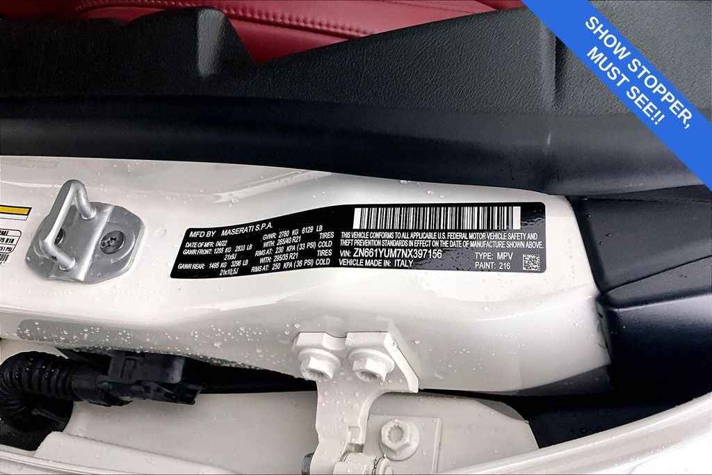 This Levante Modena is equipped with a host of advanced safety and convenience features, including a 360° View Parking Camera, Blind Spot Warning/Intervention, Lane Departure Warning/Prevention, and Pre-Collision Warning/Prevention, keeping you and your passengers safe and secure on the road.