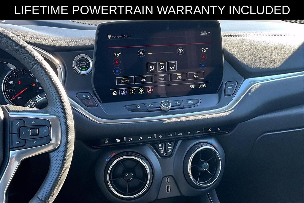 New Price! CARFAX One-Owner. Grubbs INFINITI offers this Market Priced Pre-Owned 2023 Chevrolet Blazer LT in Black with a premium Jet Black interior. Fully inspected and all Eligible Vehicles are backed by our exclusive Grubbs Lifetime Powertrain Warranty, it comes loaded with features including Convenience Package (Adaptive Cruise Control, Black Roof-Mounted Side Rails, Enhanced Automatic Emergency Braking, Heated Driver & Front Passenger Seats, Inside Rear-View Auto-Dimming Mirror, Rear Power Programmable Liftgate, Universal Home Remote, and Wireless Charging), Floor Liner Package (LPO) (1st & 2nd Row All-Weather Floor Liners (LPO) and Integrated Cargo Liner (LPO)), and Preferred Equipment Group 2LT Convenience Package (Adaptive Cruise Control, Black Roof-Mounted Side Rails, Enhanced Automatic Emergency Braking, Heated Driver & Front Passenger Seats, Inside Rear-View Auto-Dimming Mirror, Rear Power Programmable Liftgate, Universal Home Remote, and Wireless Charging), Floor Liner Package (LPO) (1st & 2nd Row All-Weather Floor Liners (LPO) and Integrated Cargo Liner (LPO)), Preferred Equipment Group 2LT, Driver Confidence Package (Lane Change Alert w/Side Blind Zone Alert, Rear Cross Traffic Alert, and Rear Park Assist w/Audible Warning), 170 Amp Alternator, 3.47 Final Drive Axle Ratio, 4-Way Manual Front Passenger Seat Adjuster, 4-Wheel Disc Brakes, 6 Speakers, 6-Speaker Audio System Feature, 8-Way Power Driver Seat Adjuster, ABS brakes, Air Conditioning, Alloy wheels, AM/FM radio: SiriusXM with 360L, Apple CarPlay/Android Auto, Auto High-beam Headlights, Automatic temperature control, Brake assist, Bumpers: body-color, Child-Seat-Sensing Airbag, Compass, Delay-off headlights, Driver door bin, Driver vanity mirror, Dual front impact airbags, Dual front side impact airbags, Electronic Stability Control, Emergency communication system: OnStar and Chevrolet connected services capable, Four wheel independent suspension, Front anti-roll bar, Front Bucket Seats, Front Center Armrest, Front dual zone A/C, Front reading lights, Fully automatic headlights, Heated door mirrors, Illuminated entry, Knee airbag, Leather Shift Knob, Low tire pressure warning, Not Equipped w/Rear Park Assist, Occupant sensing airbag, Outside temperature display, Overhead airbag, Overhead console, Panic alarm, Passenger door bin, Passenger vanity mirror, Power door mirrors, Power Driver Lumbar Control, Power driver seat, Power steering, Power windows, Premium audio system: Chevrolet Infotainment 3 Plus, Premium Cloth Seat Trim, Radio data system, Radio: Chevrolet Infotainment 3 Plus System, Rear anti-roll bar, Rear reading lights, Rear seat center armrest, Rear window defroster, Rear window wiper, Remote keyless entry, Ride & Handling Suspension, Security system, SiriusXM w/360L, Speed control, Speed-sensing steering, Split folding rear seat, Spoiler, Steering wheel mounted audio controls, Tachometer, Telescoping steering wheel, Tilt steering wheel, Traction control, Trip computer, Variably intermittent wipers, Voltmeter, and Wheels: 18 Grazen Metallic Aluminum. 2023 Chevrolet Blazer LT 4D Sport Utility FWD 2.0L Turbocharged 9-Speed Automatic with Overdrive Black Upgraded Wheel Package, 1st & 2nd Row All-Weather Floor Liners (LPO), Adaptive Cruise Control, Black Roof-Mounted Side Rails, Convenience Package, Enhanced Automatic Emergency Braking, Floor Liner Package (LPO), Heated Driver & Front Passenger Seats, Inside Rear-View Auto-Dimming Mirror, Integrated Cargo Liner (LPO), Preferred Equipment Group 2LT, Rear Power Programmable Liftgate, Universal Home Remote, Wireless Charging.