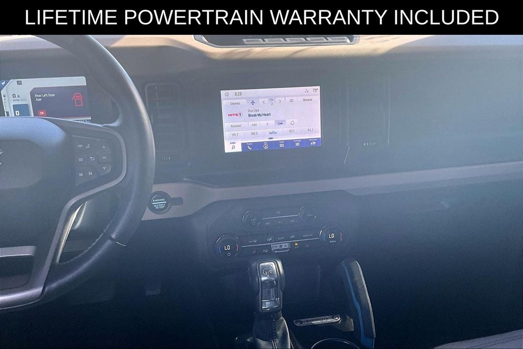 New Price! Recent Arrival! Grubbs INFINITI offers this Market Priced Pre-Owned 2023 Ford Bronco Wildtrak in Race Red with a premium Black Onyx interior. Fully inspected and all Eligible Vehicles are backed by our exclusive Grubbs Lifetime Powertrain Warranty, it comes loaded with features including Bronco Wildtrak, 4D Sport Utility, 2.7L EcoBoost V6, 10-Speed Automatic, 4WD, Race Red, Black Onyx Cloth, ABS brakes, Compass, Electronic Stability Control, Heated door mirrors, Illuminated entry, Low tire pressure warning, Remote keyless entry, and Traction control Bronco Wildtrak, 4D Sport Utility, 2.7L EcoBoost V6, 10-Speed Automatic, 4WD, Race Red, Black Onyx Cloth, ABS brakes, Compass, Electronic Stability Control, Heated door mirrors, Illuminated entry, Low tire pressure warning, Remote keyless entry, Traction control, 4-Wheel Disc Brakes, 7 Speakers, Air Conditioning, AM/FM radio: SiriusXM with 360L, AM/FM Stereo, Auto High-beam Headlights, Brake assist, Delay-off headlights, Driver door bin, Driver vanity mirror, Dual front impact airbags, Dual front side impact airbags, Emergency communication system: 911 Assist, Exterior Parking Camera Rear, Front anti-roll bar, Front Bucket Seats, Front Center Armrest, Front reading lights, Front wheel independent suspension, Fully automatic headlights, Integrated roll-over protection, Occupant sensing airbag, Outside temperature display, Overhead airbag, Overhead console, Panic alarm, Passenger door bin, Passenger vanity mirror, Power door mirrors, Power steering, Power windows, Radio data system, Security system, SiriusXM Radio w/360L, Speed control, Split folding rear seat, Steering wheel mounted audio controls, SYNC 4, Tachometer, Telescoping steering wheel, Tilt steering wheel, Trip computer, and Variably intermittent wipers. 2023 Ford Bronco Wildtrak 4D Sport Utility 4WD 2.7L EcoBoost V6 10-Speed Automatic Race Red Bronco Wildtrak, 4D Sport Utility, 2.7L EcoBoost V6, 10-Speed Automatic, 4WD, Race Red, Black Onyx Cloth, ABS brakes, Compass, Electronic Stability Control, Heated door mirrors, Illuminated entry, Low tire pressure warning, Remote keyless entry, Traction control.
