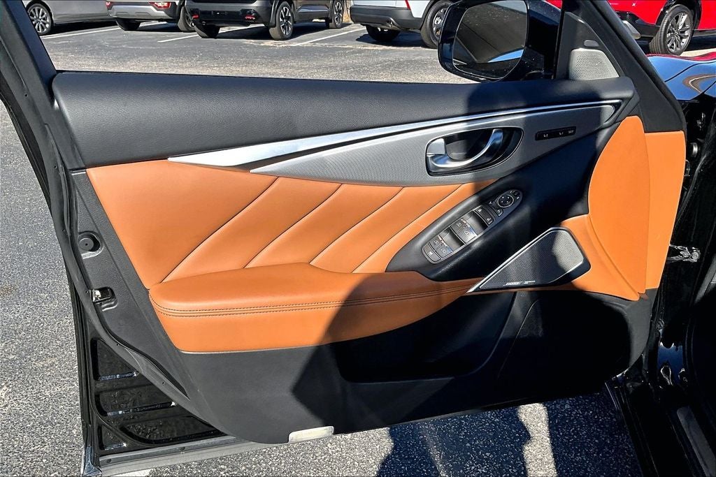 Grubbs INFINITI of San Antonio is pleased to present you with another Market Priced Pre-Owned Vehicle that has gone through our comprehensive 167 point safety inspection. This 2023 INFINITI Q50 LUXE is loaded with the following high value options Cargo Package (Cargo Net, First Aid Kit, Shopping Bag Hooks, and Trunk Mat), INFINITI Certified, 16 Speakers, 18 x 7.5 Aluminum Alloy Wheels, 4-Wheel Disc Brakes, ABS brakes, Air Conditioning, Alloy wheels, AM/FM radio: SiriusXM, Auto High-beam Headlights, Auto tilt-away steering wheel, Auto-dimming Rear-View mirror, Automatic temperature control, Blind Spot Warning, Brake assist, Bumpers: body-color, CD player, Compass, Delay-off headlights, Driver door bin, Driver vanity mirror, Dual front impact airbags, Dual front side impact airbags, Electronic Stability Control, Emergency communication system: INFINITI Connection, Four wheel independent suspension, Front anti-roll bar, Front Bucket Seats, Front Center Armrest, Front dual zone A/C, Front fog lights, Front reading lights, Fully automatic headlights, Garage door transmitter: HomeLink, Heated door mirrors, Heated Front Bucket Seats, Heated front seats, Heated steering wheel, Illuminated entry, Leather Shift Knob, Leather steering wheel, Leather-Appointed Seating Surfaces, Literature Kit, Low tire pressure warning, Memory seat, Occupant sensing airbag, Outside temperature display, Overhead airbag, Overhead console, Panic alarm, Passenger door bin, Passenger vanity mirror, Power door mirrors, Power driver seat, Power moonroof, Power passenger seat, Power steering, Power windows, Radio data system, Radio: INFINITI InTouch Dual HD Display System, Rain sensing wipers, Rear anti-roll bar, Rear reading lights, Rear seat center armrest, Rear USB/Power Delivery Port, Rear window defroster, Remote keyless entry, Saddle Brown Interior, Security system, Speed control, Speed-Sensitive Wipers, Splash Guards, Split folding rear seat, Steering wheel memory, Steering wheel mounted audio controls, Tachometer, Telescoping steering wheel, Tilt steering wheel, Traction control, Trip computer, Turn signal indicator mirrors, and Variably intermittent wipers. Clean CARFAX. CARFAX One-Owner.