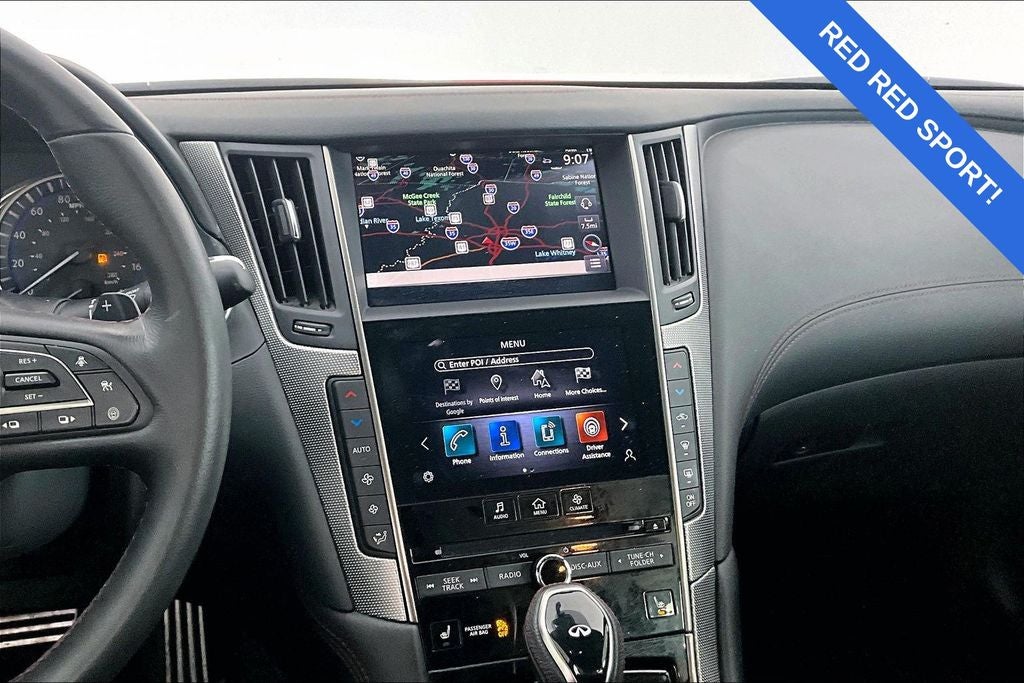 This Q50 Red Sport 400 also boasts an impressive array of advanced safety technologies, including Blind Spot Warning/Intervention, Lane Departure Warning/Prevention, and Pre-Collision Warning/Prevention, giving you the confidence and peace of mind you deserve.