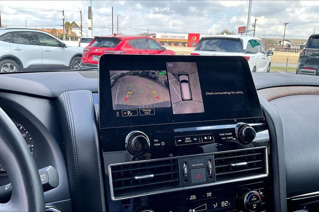 Grubbs INFINITI of San Antonio is pleased to present you with another Market Priced Pre-Owned Vehicle that has gone through our comprehensive 167 point safety inspection. This 2023 Nissan Armada SL is loaded with the following high value options Captain's Chairs Package (2nd Row Captain's Chairs and 2nd Row Center Console w/Padded Armrest), Cargo Package, 13 Speakers, 2.94 Axle Ratio, 3rd Row Carpeted Floor Mats - Captain Seat, 3rd row seats: split-bench, 4-Wheel Disc Brakes, ABS brakes, Air Conditioning, Alloy wheels, AM/FM radio: SiriusXM, Anti-whiplash front head restraints, Auto High-beam Headlights, Auto tilt-away steering wheel, Auto-dimming door mirrors, Auto-dimming Rear-View mirror, Auto-leveling suspension, Automatic temperature control, Bose 13-Speaker Premium Audio System, Brake assist, Bumpers: body-color, Cross Bars, Delay-off headlights, Driver door bin, Driver vanity mirror, Dual front impact airbags, Dual front side impact airbags, Electronic Stability Control, Emergency communication system: NissanConnect Services, Exterior Parking Camera Rear, Four wheel independent suspension, Front anti-roll bar, Front Bucket Seats, Front Center Armrest, Front dual zone A/C, Front fog lights, Front reading lights, Fully automatic headlights, Garage door transmitter: HomeLink, Heated door mirrors, Heated Front Bucket Seats, Heated front seats, Heated steering wheel, Illuminated entry, Illuminated Kick Plates, Knee airbag, Leather Shift Knob, Leather-Appointed Seat Trim, Low tire pressure warning, Memory seat, Navigation System, NissanConnect featuring Apple CarPlay and Android Auto, Occupant sensing airbag, Outside temperature display, Overhead airbag, Overhead console, Panic alarm, Passenger door bin, Passenger vanity mirror, Power door mirrors, Power driver seat, Power Liftgate, Power moonroof, Power passenger seat, Power steering, Power windows, Premium audio system: Bose, Radio: NissanConnect w/SiriusXM, Rear air conditioning, Rear anti-roll bar, Rear reading lights, Rear seat center armrest, Rear window defroster, Rear window wiper, Reclining 3rd row seat, Remote keyless entry, Security system, Speed control, Speed-sensing steering, Speed-Sensitive Wipers, Split folding rear seat, Spoiler, Steering wheel memory, Steering wheel mounted audio controls, Tachometer, Telescoping steering wheel, Tilt steering wheel, Traction control, Trip computer, Turn signal indicator mirrors, Variably intermittent wipers, Voltmeter, and Wheels: 20 x 8J Painted Alloy. Clean CARFAX. CARFAX One-Owner.