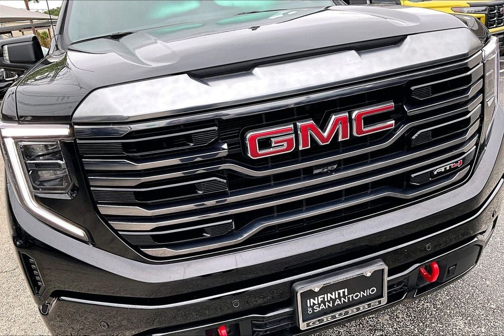 Grubbs INFINITI of San Antonio is pleased to present you with another Market Priced Pre-Owned Vehicle that has gone through our comprehensive 167 point safety inspection. This 2024 GMC Sierra 1500 AT4 is loaded with the following high value options AT4 Preferred Package (Power Sliding Rear Window w/Rear Defogger and Universal Home Remote), AT4 Premium Package (Off-Road High Clearance Step (LPO)), Preferred Equipment Group 4SB (120-Volt Bed Mounted Power Outlet, 120-Volt Interior Power Outlet, 2 Charge/Data USB Ports Inside Center Console, 2 Type-C Charge-Only Rear USB Ports, 2 USB Ports, 220 Amp Alternator, Auto-Locking Rear Differential, Black Chrome Header & Grille Insert Bars, Color-Keyed Carpeting Floor Covering, Deep-Tinted Glass, Electric Rear-Window Defogger, Floor-Mounted Center Console, Front Prem Floor Liners w/Removable Carpet Insert, Front Rain-Sensing Wipers, GMC Connected Access Capable, HD Surround Vision, Heated 2nd Row Outboard Seats, Heated Driver & Front Outboard Passenger Seating, Heavy-Duty Air Filter, Hill Descent Control, Hitch View, In-Vehicle Trailering System App, Integrated Trailer Brake Controller, Keyless Open & Start, LED Cargo Area Lighting, OnStar & GMC Connected Services Capable, Perimeter Lighting, Power Door Locks, Power Front Passenger Windows w/Express Up/Down, Power Front Windows w/Driver Express Up/Down, Power Rake & Telescoping Steering Column, Power Rear Windows w/Express Down, Premium Bose 7-Speaker Sound System, Push Button Start, Rear Cross Traffic Braking, Rear Pedestrian Detection, Rear Prem Floor Liners w/Removable Carpet Insert, Rear Wheelhouse Liners, Red Recovery Hooks, Remote Vehicle Starter System, SiriusXM w/360L, Spray-On Pickup Bedliner w/AT4 Logo, Steering Wheel Audio Controls, Theft Deterrent System (Unauthorized Entry), Trailer Camera Provisions, Trailer Side Blind Zone Alert, Ultrasonic Front & Rear Park Assist, Ventilated Driver & Front Passenger Seats, Wi-Fi Hotspot Capable, and Wireless Charging), Technology Package (Bed View Camera, Multicolor 15 Diagonal Head-Up Display, and Rear Camera Mirror), Trailering Package (Hitch Guidance), 10-Speed Automatic, 4WD, Jet Black With Kalahari Accents Leather, 10-Way Power Driver Seat Adjuster w/Lumbar, 10-Way Power Passenger Seat Adjuster w/Lumbar, 18 x 8.5 Machined Aluminum Wheels, 3.23 Rear Axle Ratio, 4-Wheel Disc Brakes, 7 Speakers, ABS brakes, Air Conditioning, Alloy wheels, AM/FM radio: SiriusXM with 360L, Apple CarPlay/Android Auto, Auto High-beam Headlights, Auto-dimming door mirrors, Auto-dimming Rear-View mirror, Automatic Emergency Braking, Automatic temperature control, Block heater, Body Color Wheel Arch Moldings (LPO), Brake assist, Buckle to Drive, Bumpers: body-color, Compass, Delay-off headlights, Driver door bin, Driver Memory, Driver vanity mirror, Dual front impact airbags, Dual front side impact airbags, Electronic Stability Control, Engine Block Heater, Following Distance Indicator, Forward Collision Alert, Front anti-roll bar, Front Bucket Seats, Front Center Armrest, Front dual zone A/C, Front fog lights, Front License Plate Kit, Front Pedestrian Braking, Front reading lights, Front wheel independent suspension, Fully automatic headlights, Heated door mirrors, Heated front seats, Heated rear seats, Heated steering wheel, Illuminated entry, IntelliBeam Automatic High Beam On/Off, Lane Keep Assist w/Lane Departure Warning, Low tire pressure warning, Memory seat, Navigation System, Occupant sensing airbag, Off-Road Suspension, Outside temperature display, Overhead airbag, Overhead console, Panic alarm, Passenger door bin, Passenger vanity mirror, Perforated Front Leather Seat Trim, Power door mirrors, Power driver seat, Power passenger seat, Power steering, Power Sunroof, Power windows, Premium audio system: GMC Infotainment System, Radio data system, Radio: Premium GMC Infotainment Audio System, Rain sensing wipers, Rear reading lights, Rear seat center armrest, Rear step bumper, Rear Underseat Storage
