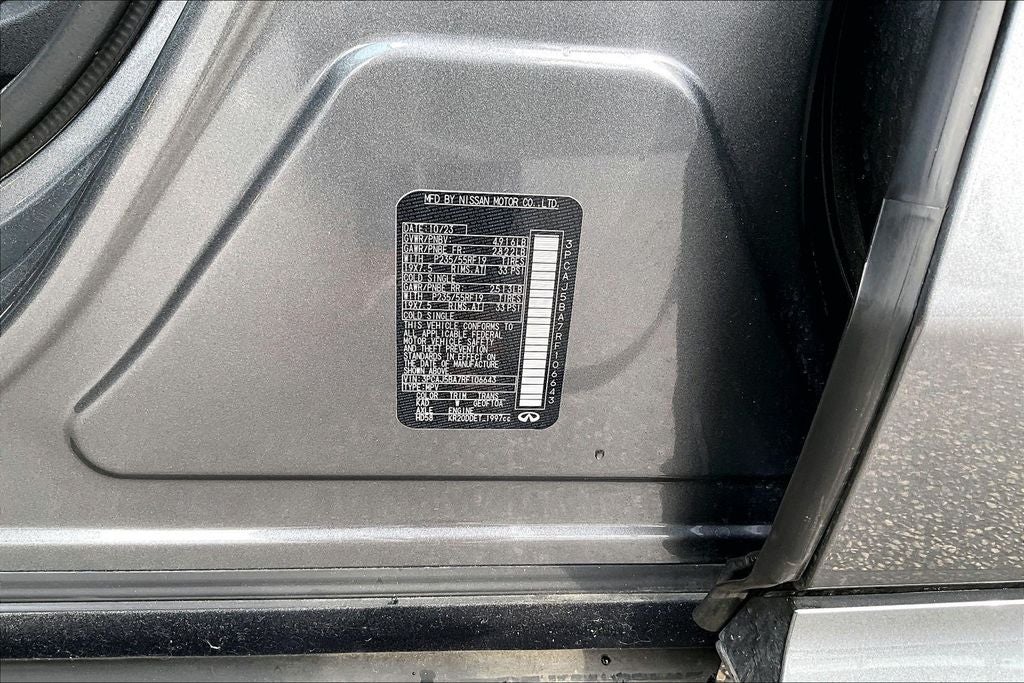 • Radio: HD Audio System -inc: 6 speakers, INFINITI InTouch, INFINITI InTouch services, INFINITI InTouch dual display system w/upper 8" and lower 7" HD touch screens, wireless Apple CarPlay, Android Auto, HD Radio technology, SiriusXM radio w/advanced audio features and 90-day complimentary trial, SiriusXM Travel Link w/90-day complimentary trial, INFINITI voice recognition, Siri Eyes Free, Wi-Fi hotspot, active noise cancellation, Bluetooth® hands-free phone system and streaming audio via Bluetooth®