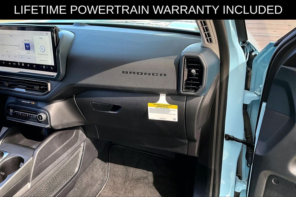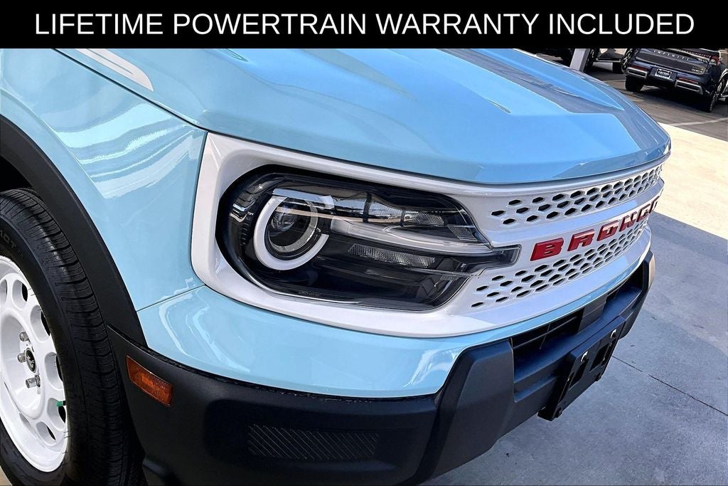 Recent Arrival! Grubbs INFINITI offers this Market Priced Pre-Owned 2025 Ford Bronco Sport Heritage in Blue with a premium Navy Pier interior. Fully inspected and all Eligible Vehicles are backed by our exclusive Grubbs Lifetime Powertrain Warranty, it comes loaded with features including Convenience Package (Front Driver/Passenger Seat Back Map Pockets, Heated 8-Way Power Driver's Seat, LED Fog Lamps, Premium Wrapped Steering Wheel, and Universal Garage Door Opener (UGDO)), Equipment Group 250A, 4-Wheel Disc Brakes, 6 Speakers, ABS brakes, Air Conditioning, Alloy wheels, AM/FM radio: SiriusXM, AM/FM Stereo, Auto High-beam Headlights, Automatic temperature control, Brake assist, Compass, Delay-off headlights, Driver door bin, Driver vanity mirror, Dual front impact airbags, Dual front side impact airbags, Electronic Stability Control, Emergency communication system: SYNC 4 911 Assist, Four wheel independent suspension, Front anti-roll bar, Front Bucket Seats, Front Center Armrest, Front License Plate Bracket, Front reading lights, Fully automatic headlights, Heated door mirrors, Illuminated entry, Knee airbag, Low tire pressure warning, Occupant sensing airbag, Outside temperature display, Overhead airbag, Overhead console, Panic alarm, Passenger door bin, Passenger vanity mirror, Plaid Cloth Front Bucket Seats, Power door mirrors, Power steering, Power windows, Radio data system, Rear anti-roll bar, Rear Parking Sensors, Rear reading lights, Rear seat center armrest, Rear window defroster, Rear window wiper, Remote keyless entry, Security system, SiriusXM, Speed control, Speed-sensing steering, Speed-Sensitive Wipers, Split folding rear seat, Steering wheel mounted audio controls, SYNC 4 w/Enhanced Voice Recognition, Tachometer, Telescoping steering wheel, Tilt steering wheel, Traction control, Trip computer, Variably intermittent wipers, and Wheels: 17 Oxford White-Painted Aluminum. 2025 Ford Bronco Sport Heritage 4D Sport Utility 4WD 1.5L EcoBoost 8-Speed Automatic Blue Upgraded Wheel Package.