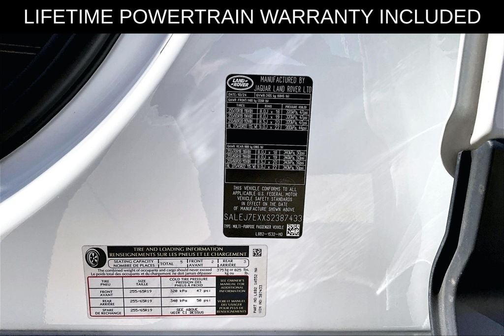 New Price! Recent Arrival! CARFAX One-Owner. Grubbs INFINITI offers this Market Priced Pre-Owned 2025 Land Rover Defender 110 S in Fuji White with a premium Ebony interior. Fully inspected and all Eligible Vehicles are backed by our exclusive Grubbs Lifetime Powertrain Warranty, it comes loaded with features including Defender 110 S, 4D Sport Utility, 2.0L I4 DI Turbocharged, 8-Speed Automatic, AWD, Fuji White, Ebony w/Resist Seat Trim, and Navigation system: Connected Navigation PIVI Pro Defender 110 S, 4D Sport Utility, 2.0L I4 DI Turbocharged, 8-Speed Automatic, AWD, Fuji White, Ebony w/Resist Seat Trim, Navigation system: Connected Navigation PIVI Pro, 11 Speakers, 12-Way Heated Electric Memory Front Seats, 4-Wheel Disc Brakes, ABS brakes, Air Conditioning, Alloy wheels, AM/FM radio: SiriusXM, Apple CarPlay & Android Auto, Auto High-beam Headlights, Auto tilt-away steering wheel, Auto-dimming door mirrors, Auto-dimming Rear-View mirror, Automatic temperature control, Brake assist, Bumpers: body-color, Compass, Delay-off headlights, Driver door bin, Driver vanity mirror, Dual front impact airbags, Dual front side impact airbags, Electronic Stability Control, Exterior Parking Camera Rear, Fog lights, Four wheel independent suspension, Front anti-roll bar, Front Bucket Seats, Front Center Armrest, Front dual zone A/C, Front reading lights, Fully automatic headlights, Garage door transmitter: HomeLink, Heated door mirrors, Heated front seats, Heated steering wheel, Illuminated entry, Low tire pressure warning, Memory seat, Occupant sensing airbag, Outside temperature display, Overhead airbag, Overhead console, Panic alarm, Passenger door bin, Passenger vanity mirror, Power door mirrors, Power driver seat, Power moonroof, Power passenger seat, Power steering, Power windows, Radio data system, Radio: Meridian Sound System, Rain sensing wipers, Rear anti-roll bar, Rear fog lights, Rear reading lights, Rear seat center armrest, Rear window defroster, Rear window wiper, Remote keyless entry, Resist and Resolve Seat Trim, Security system, Speed control, Speed-sensing steering, Speed-Sensitive Wipers, Split folding rear seat, Steering wheel memory, Steering wheel mounted audio controls, Tachometer, Telescoping steering wheel, Tilt steering wheel, Traction control, Trip computer, Variably intermittent wipers, Weather band radio, and Wheels: 19 Gloss Sparkle Silver Style 6010. 2025 Land Rover Defender 110 S 4D Sport Utility AWD 2.0L I4 DI Turbocharged 8-Speed Automatic Fuji White Upgraded Wheel Package, Defender 110 S, 4D Sport Utility, 2.0L I4 DI Turbocharged, 8-Speed Automatic, AWD, Fuji White, Ebony w/Resist Seat Trim, Navigation system: Connected Navigation PIVI Pro.