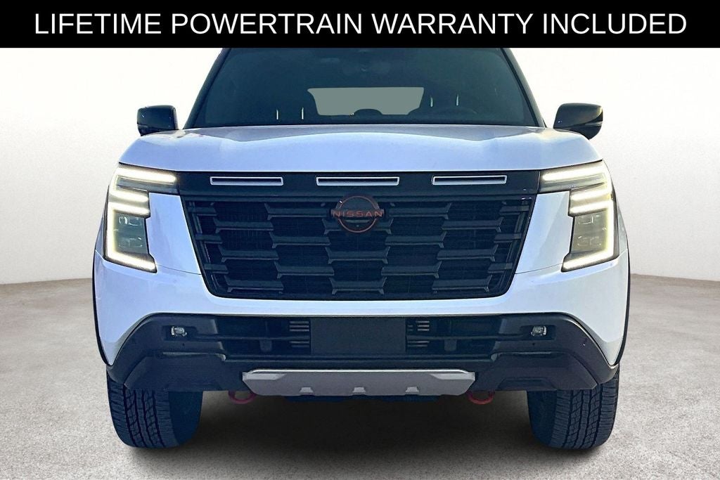 New Price! CARFAX One-Owner. Grubbs INFINITI offers this Market Priced Pre-Owned 2025 Nissan Armada PRO-4X in Aspen White Tricoat/Super Black with a premium Charcoal interior. Fully inspected and all Eligible Vehicles are backed by our exclusive Grubbs Lifetime Powertrain Warranty, it comes loaded with features including 4WD and PRO-4X Carpeted Floor Mats PRO-4X Premium Package (Biometric Cooling, Hands-Free Power Liftgate, Heated & Ventilated Driver & Passenger Seats, Heated 2nd Row Seats, In-Car Camera, Intelligent Dash Cam, and Panoramic Moonroof), 4WD, PRO-4X Carpeted Floor Mats, 12 Speakers, 2-Tone Roof, 3rd row seats: split-bench, 4-Wheel Disc Brakes, ABS brakes, Adaptive suspension, Air Conditioning, Alloy wheels, AM/FM radio: SiriusXM, Anti-whiplash front head restraints, Auto High-beam Headlights, Auto tilt-away steering wheel, Auto-dimming door mirrors, Auto-dimming Rear-View mirror, Auto-leveling suspension, Automatic temperature control, Brake assist, Bumpers: body-color, Delay-off headlights, Driver door bin, Driver vanity mirror, Dual front impact airbags, Dual front side impact airbags, Electronic Stability Control, Emergency communication system: NissanConnect Services, Fog lights, Four wheel independent suspension, Front anti-roll bar, Front Bucket Seats, Front Center Armrest, Front dual zone A/C, Front reading lights, Fully automatic headlights, Garage door transmitter: myQ Connected Garage, Genuine wood dashboard insert, Heated door mirrors, Heated Front Bucket Seats, Heated front seats, Heated steering wheel, HVAC memory, Illuminated entry, Knee airbag, Leather steering wheel, Low tire pressure warning, Memory seat, Navigation System, Occupant sensing airbag, Outside temperature display, Overhead airbag, Overhead console, Panic alarm, Passenger door bin, Passenger vanity mirror, Power door mirrors, Power driver seat, Power Liftgate, Power passenger seat, Power steering, Power windows, Premium Paint & 2-Tone Roof, PRO-4X Unique Quilted Leather Seat Trim, Radio: NissanConnect w/SiriusXM 360L, Rain sensing wipers, Rear air conditioning, Rear anti-roll bar, Rear reading lights, Rear seat center armrest, Rear window defroster, Rear window wiper, Reclining 3rd row seat, Remote keyless entry, Security system, Speed control, Speed-sensing steering, Speed-Sensitive Wipers, Split folding rear seat, Spoiler, Steering wheel memory, Steering wheel mounted audio controls, Tachometer, Telescoping steering wheel, Tilt steering wheel, Traction control, Trip computer, Turn signal indicator mirrors, Variably intermittent wipers, Voltmeter, and Wheels: 20 Painted PRO-4X Alloy. 2025 Nissan Armada PRO-4X 4D Sport Utility 4WD 3.5L DOHC 9-Speed Automatic Aspen White Tricoat/Super Black 4WD, PRO-4X Carpeted Floor Mats.