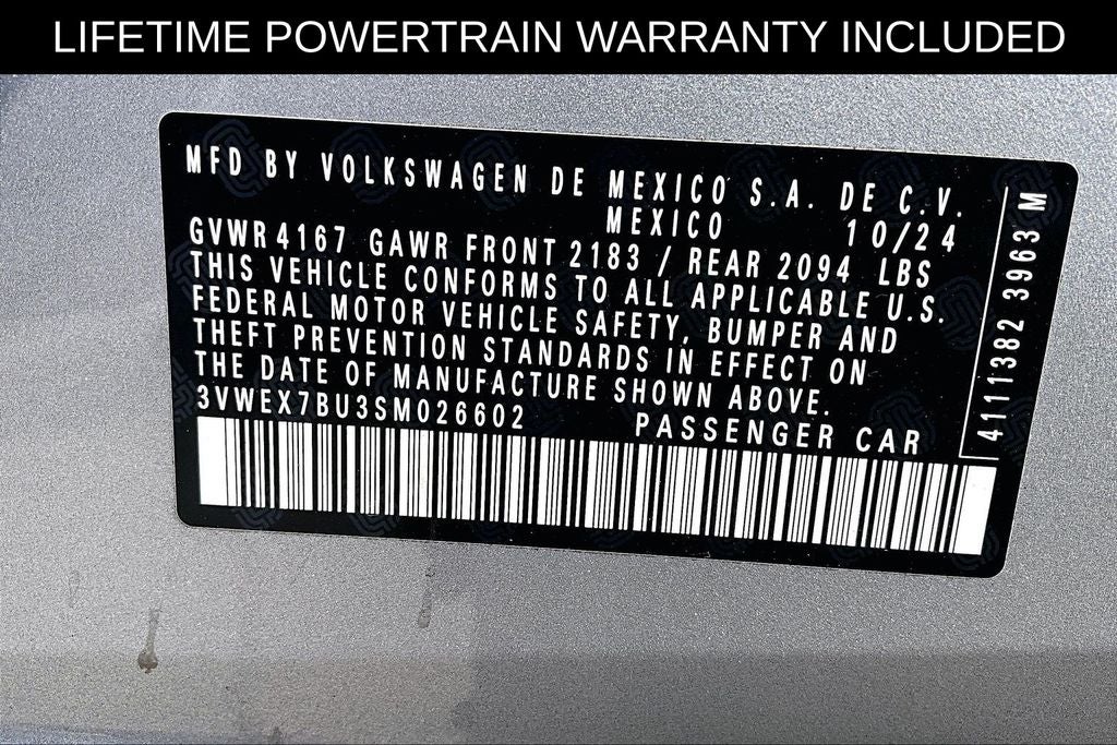 New Price! CARFAX One-Owner. Grubbs INFINITI offers this Market Priced Pre-Owned 2025 Volkswagen Jetta 1.5T SE in Pyrite Silver Metallic with a premium Grigio/Titan Black interior. Fully inspected and all Eligible Vehicles are backed by our exclusive Grubbs Lifetime Powertrain Warranty, it comes loaded with features including Grigio/Titan Black w/CloudTex and V-Tex Leatherette Seat Trim Grigio/Titan Black w/CloudTex and V-Tex Leatherette Seat Trim, 4-Wheel Disc Brakes, 6 Speakers, ABS brakes, Active Blind Spot Monitor, Air Conditioning, Alloy wheels, AM/FM radio: SiriusXM with 360L, Auto-dimming Rear-View mirror, Automatic temperature control, Brake assist, Bumpers: body-color, CloudTex & V-Tex Leatherette Seat Trim, Delay-off headlights, Driver door bin, Driver vanity mirror, Dual front impact airbags, Dual front side impact airbags, Electronic Stability Control, Emergency communication system: VW Car-Net Safe & Secure 5-year, Exterior Parking Camera Rear, Front anti-roll bar, Front Bucket Seats, Front Center Armrest, Front dual zone A/C, Front wheel independent suspension, Fully automatic headlights, Heated door mirrors, Heated Front Seats, Heated front seats, Illuminated entry, Leather Shift Knob, Leather steering wheel, Low tire pressure warning, Occupant sensing airbag, Outside temperature display, Overhead airbag, Overhead console, Panic alarm, Passenger door bin, Passenger vanity mirror, Power door mirrors, Power driver seat, Power steering, Power windows, Radio data system, Radio: MIB3 Composition Media w/8 Touchscreen, Rain sensing wipers, Rear anti-roll bar, Rear reading lights, Rear seat center armrest, Rear window defroster, Remote keyless entry, Speed control, Speed-sensing steering, Split folding rear seat, Steering wheel mounted audio controls, Tachometer, Telescoping steering wheel, Tilt steering wheel, Traction control, Trip computer, Variably intermittent wipers, and Wheels: 17 Twin 5-Spoke 2-Tone Machined Alloy. 2025 Volkswagen Jetta 1.5T SE 4D Sedan FWD 1.5L I-4 DI DOHC Turbocharged 8-Speed Automatic with Tiptronic Pyrite Silver Metallic Upgraded Wheel Package, Grigio/Titan Black w/CloudTex and V-Tex Leatherette Seat Trim.