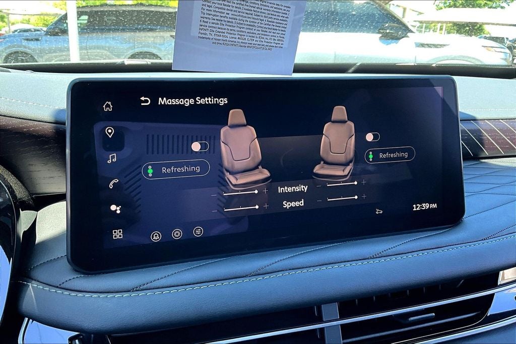 - Radio: Klipsch Reference Premiere Audio System -inc: 20 speakers w/individual audio, INFINITI InTouch 12.3" interactive display, Google built-in w/navigation: Google Assistant, Playstore, maps and data, SiriusXM satellite radio, wireless Apple CarPlay, wireless Android Auto, advanced voice recognition (one shot VDE, Natural Language Understanding (NLU)), INFINITI InTouch services and 5G Wi-Fi hotspot, Active Noise Cancellation (ANC) and 2 data capable type-C USB ports in front row